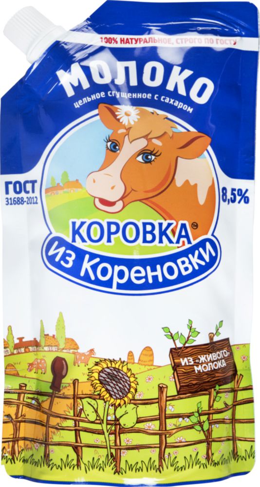 -Молоко сгущенное КОРОВКА ИЗ КОРЕНОВКИ цельное с сахаром 8,5%, без змж ГОСТ, 270 гЙогуртыКисломолочные напиткиКоктейлиМолоко короткого срока храненияСливкиМолоко длительного срока храненияЯйцоМасло сливочное, маргаринСметанаСыры мягкиеСыры плавленыеСыры твердые и полутвердыеСыры творожныеТворог и творожные изделияСыры деликатесные козьи, овечьиТворожные изделия сладкиеСыры с плесенью