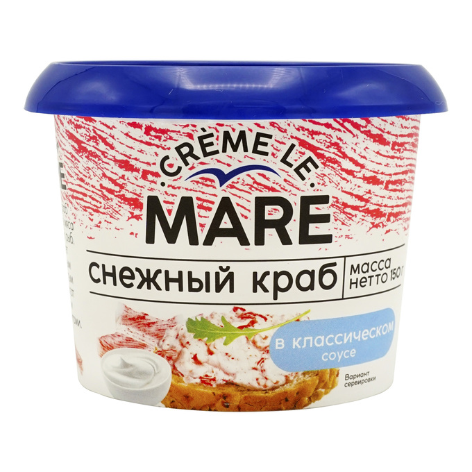 --Снежный краб MARE в классическом соусе, 150 гАлкогольБакалеяКондитерские изделияТовары бытовая химияЗдоровое питаниеЗамороженные продуктыКонсервация-рыбная, мяснаяТовары для красоты и здоровьяМасло растительноеМолочные продукты, яйцоКонсервация-овощнаяМука, Соль, Сахар, СпецииКолбасы, сосиски, деликатесыМясо, птица и полуфабрикатыКонсервация-сладкаяНапитки, Соки, ВодаОвощи, ФруктыПаназияТовары для пикникаКаши, хлопья, продукты быстрого приготовленияРыба, морепродуктыСоусы, кетчупы, майонезы, сиропыСухофрукты, Орехи, Семечки, Грибы Товары для детей, игрушкиТовары для домаТовары для животныхТовары для праздниковТовары хозтоварыГорячие напиткиСнеки, Чипсы, Сухарики