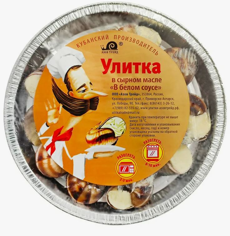 [ELEMENT_CHAIN] => Улитки АЗОВ ТРЕЙД в белом соусе в сырном масле на тарелке, 170 г